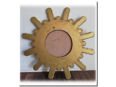 Großer Sonnenspiegel 1 Meter rund in Holzrahmen vergoldet Zola