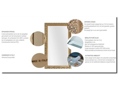 In authentischer Handwerksarbeit wird dieser Spiegel in traditioneller italienischer Vergoldungstechnik speziell für Sie angefertigt.