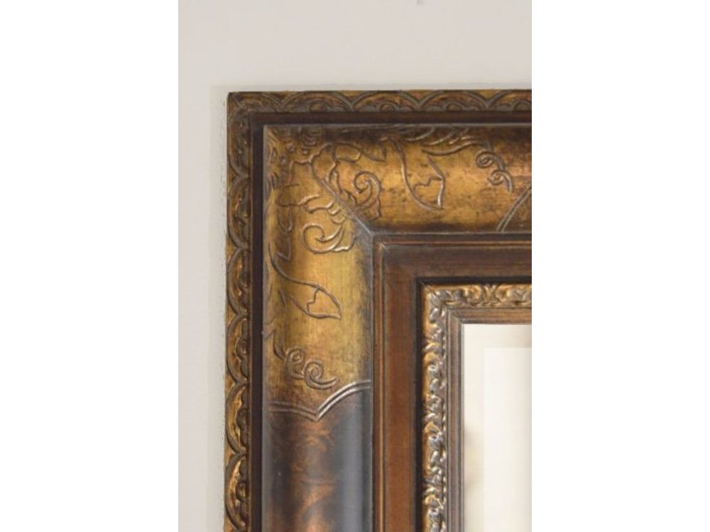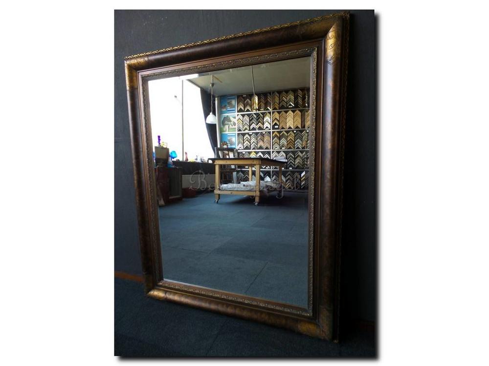 Schöner Spiegel mit einem handkolorierten Bronzerahmen aus Holz.