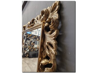 Der Akanthus ist eine mediterrane Pflanze mit anmutig geschwungenen Blättern. Der Spiegelrahmen ist mit kompletten Ästen mit gedrehtem, gekräuseltem Akanthusblatt, durchbrochen und mit einer Tiefe von 6 cm gefertigt. Italienische Handwerkskunst!
