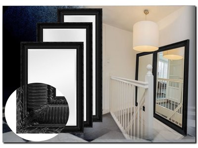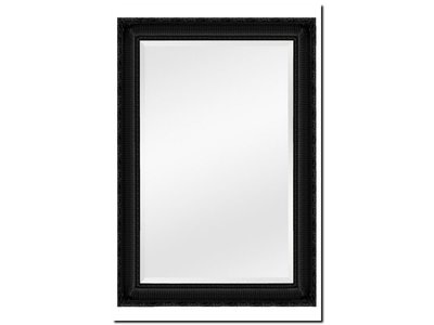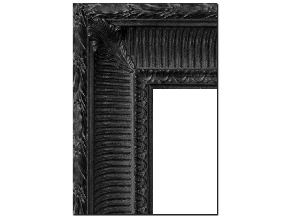Dieser Schwarzer Barockspiegel im französischen Stil hat einen schönen breiten französischen Ornamentrahmen mit Eckornamenten aus Federn und einer Kannelur-Mittelebene.