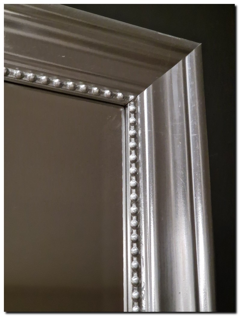 Die geraden Linien mit den einzigartigen Details einer "Perlenkette" oder "Perlenbordüre" auf der Innenseite des Rahmens verleihen dem Spiegel einen zeitlosen, aber charmanten Look.