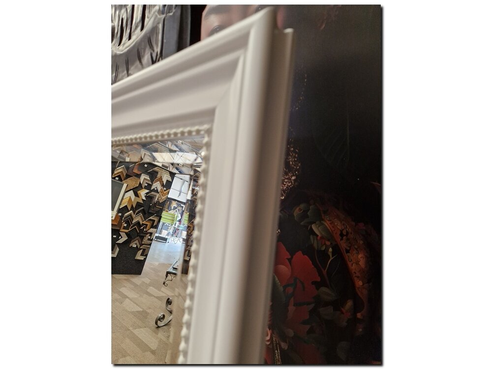 Lassen Sie sich vom Charme des klassischen weißen Spiegels NINO mit Perlenrand überraschen.