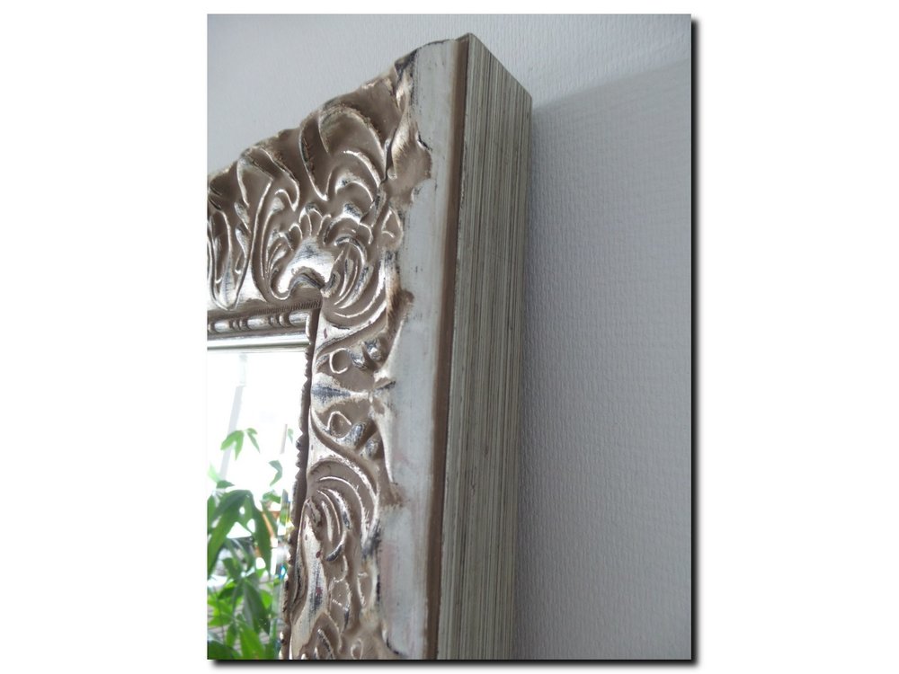 Der Spiegel wird in Italien handgefertigt und der breite Rahmen von 9,3 cm ist aus Massivholz gefertigt. Auch das Ornament ist aus Holz und ist tief mit einem zeitlosen Ornament geprägt.