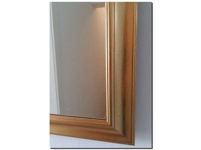 Der Rahmen des Spiegels ist mit Blattgold oder Blattsilber gefärbt. Die Holzmaserung ist noch leicht sichtbar, was dem Rahmen ein sehr natürliches Aussehen verleiht.