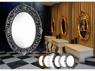 Oval mirror Carlota has a beautiful openwork frame with curls, finished at 4 points with a shell motif that gives a Mediterranean atmosphere.