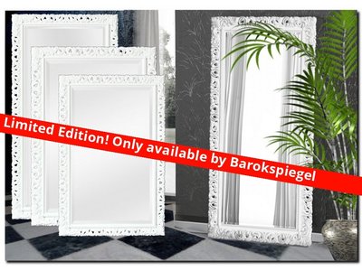 A large modern baroque mirror in high-gloss white and a limited edition.