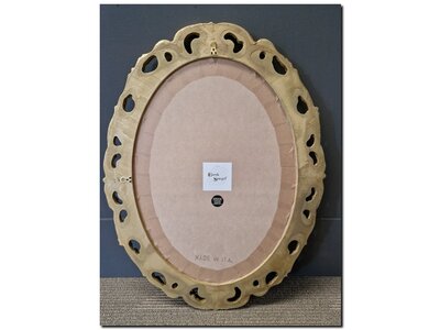 A charming characteristic oval mirror with a beautiful openwork wooden frame.