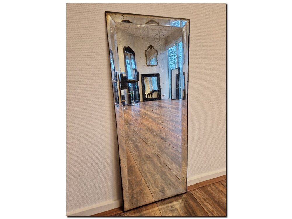 Original antique mirror glass weathered with facet 33x81 cm