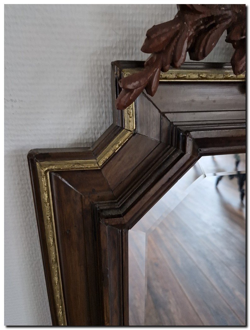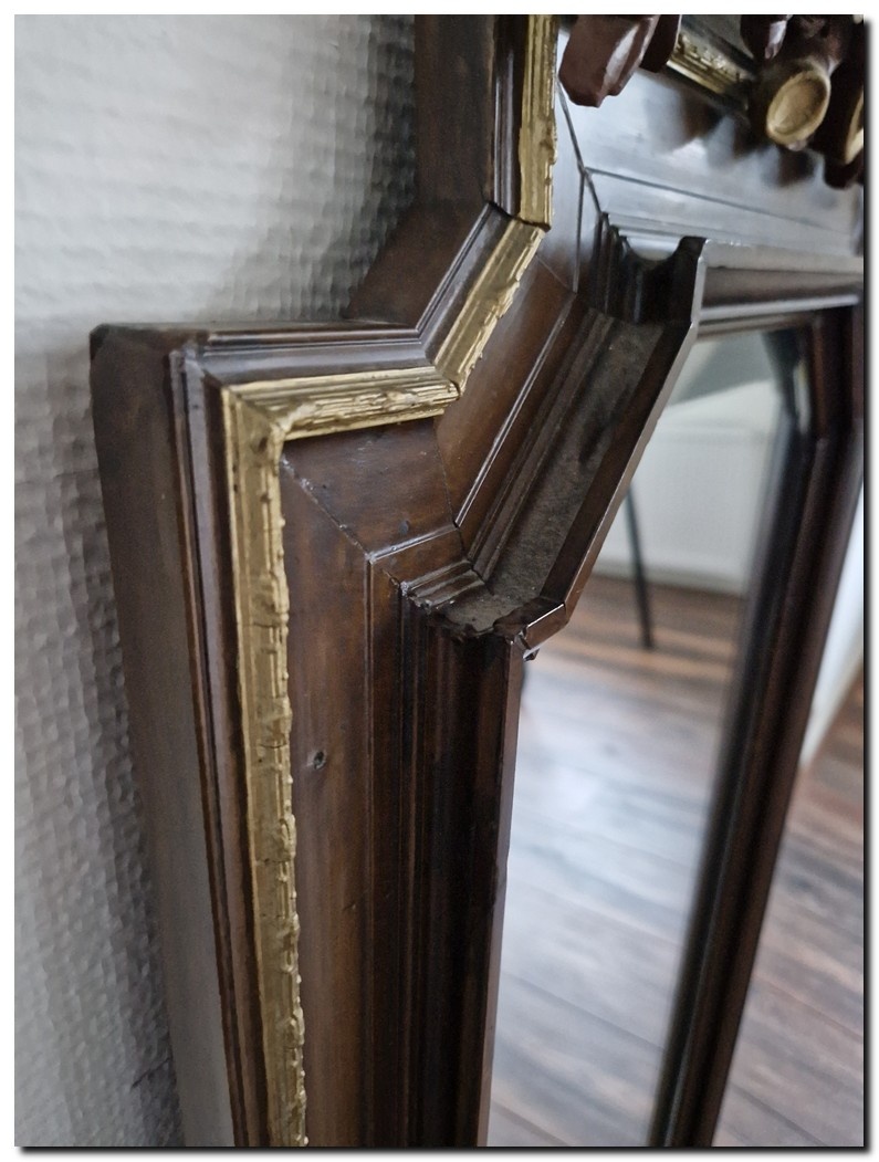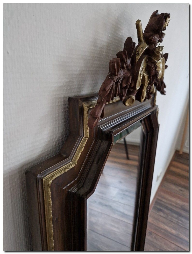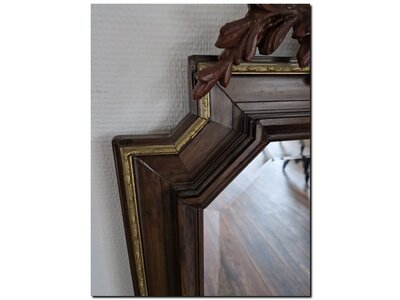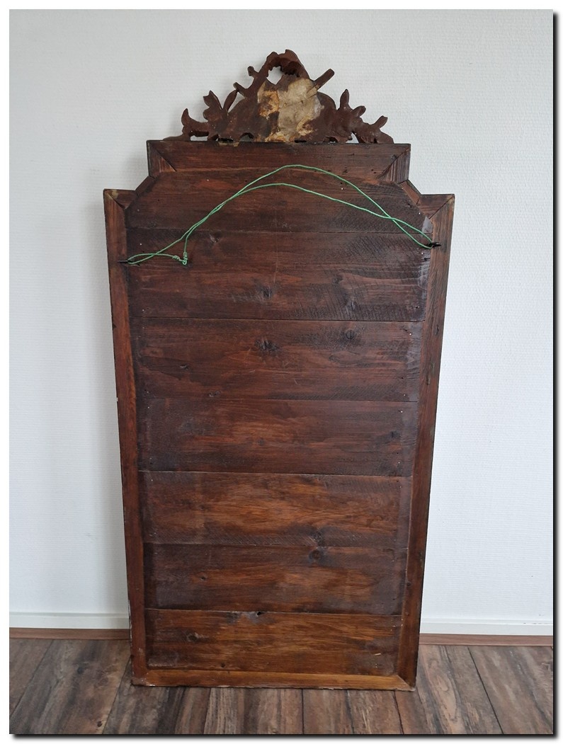 Deze spiegel beschikt over origineel spiegelglas, omringd door een brede facetrand.