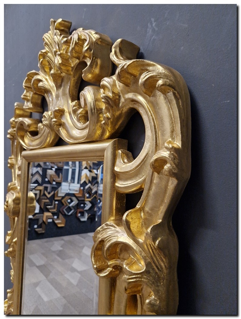 De lijst, de afwerking, de details, zelfs het glas, alles aan deze spiegel is uniek te noemen.