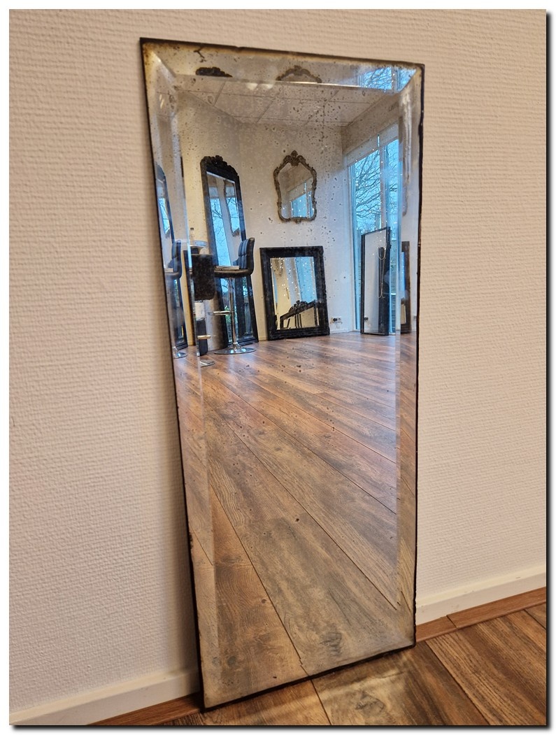Een prachtig stuk antiek spiegelglas, waarbij de vermelde prijs exclusief lijst is. Tegen een meerprijs kan het echter ook worden ingelijst in een lijst naar keuze.