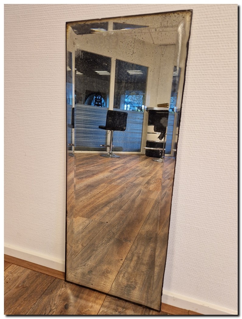 Origineel antiek spiegelglas verweerd met facet 33x81 cm