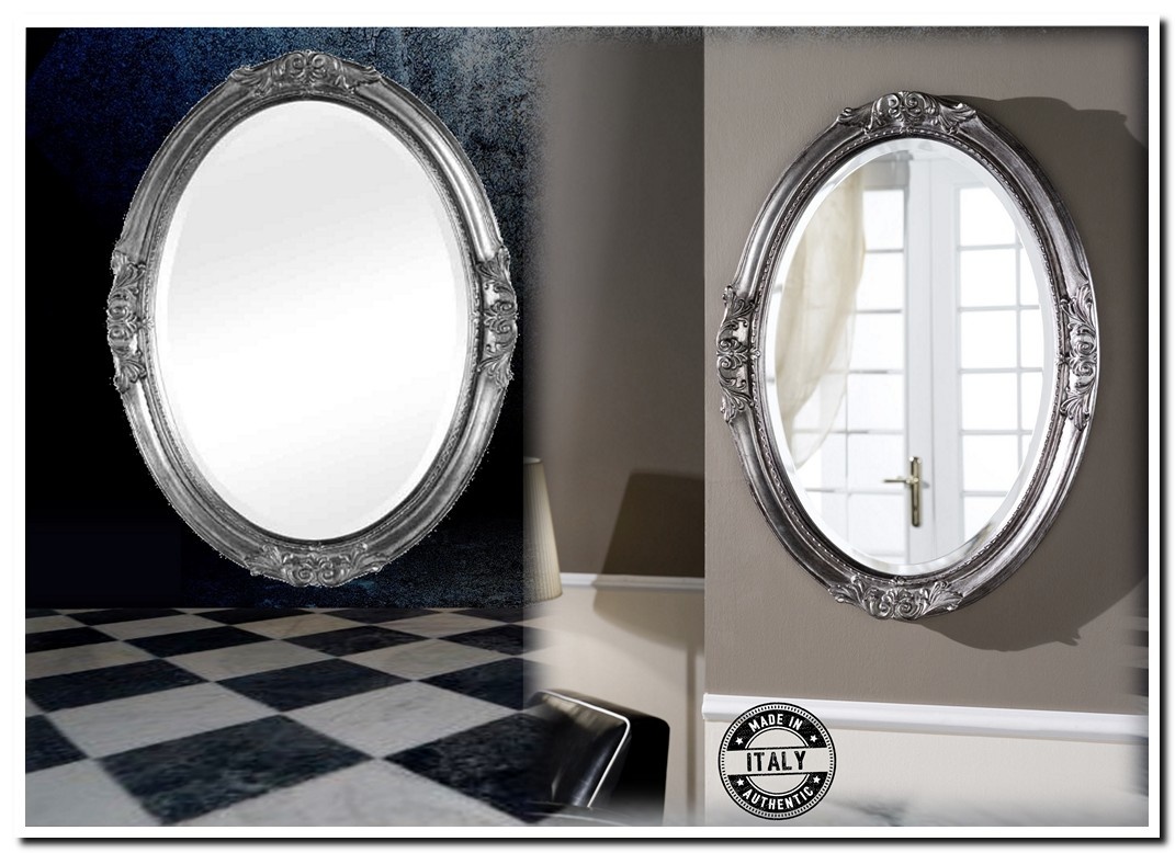 Spiegel Ovaal met ornament Agnese Antiekzilver