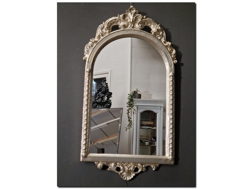 Kasteelspiegel, decoratieve sierspiegel met kuif Ambra Zilver