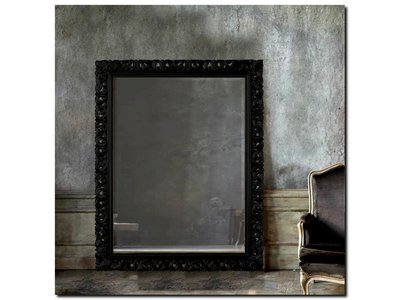 Een grote moderne barok spiegel in een moderne hoogglans zwarte kleur en een limited edition oplage.