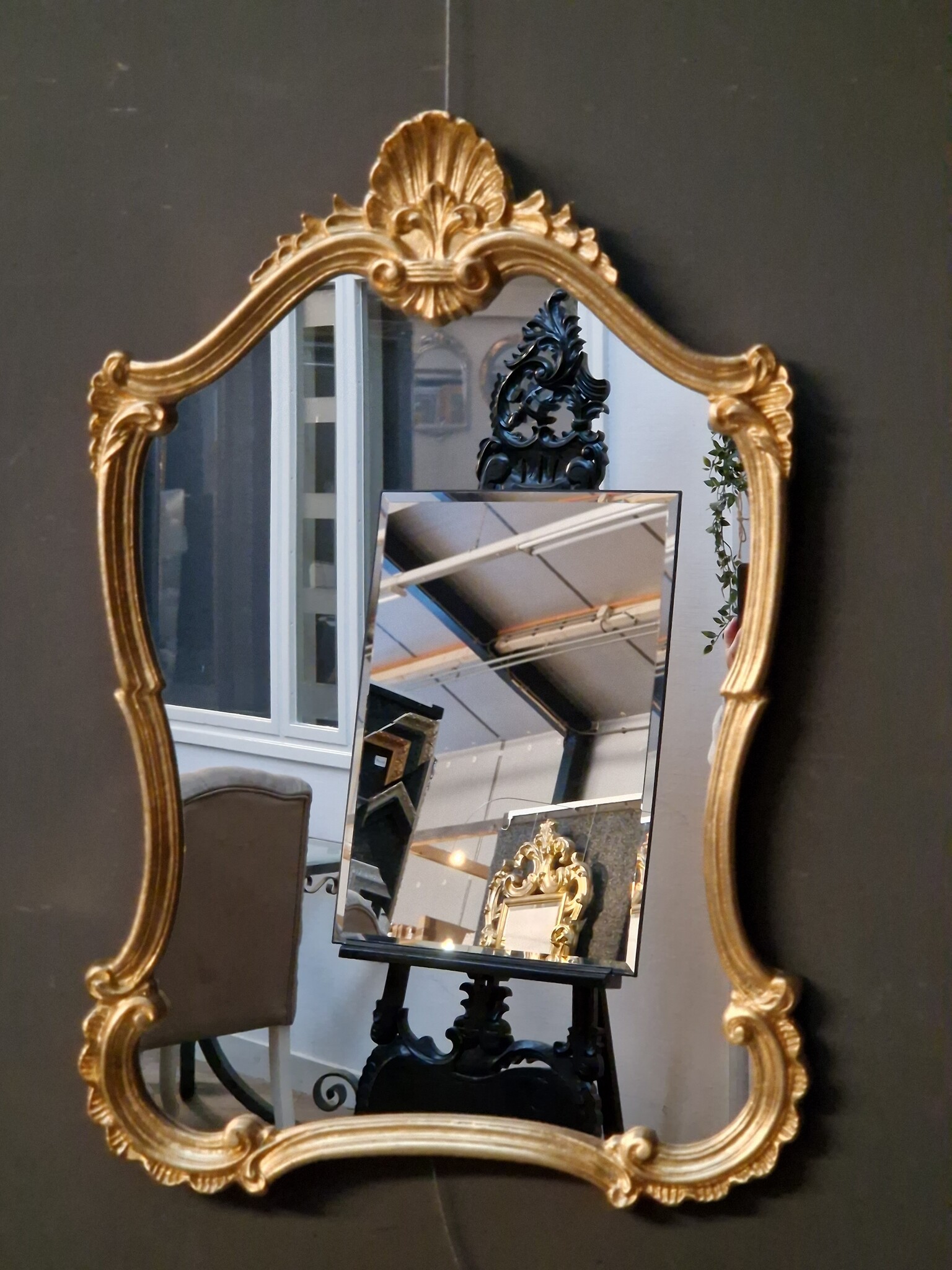 Deze hand vergulde spiegel is zeer charmant en de traditionele vorm weerspiegeld de nostalgie van de vervlogen tijden.