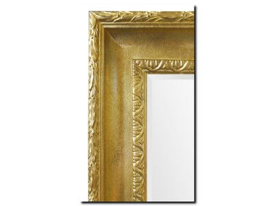 De spiegellijst wordt ambachtelijk gekleurd met bladgoud slagmetaal en afgelakt met een blanke lak voor een natuurlijke finish.