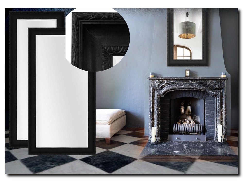 Beoordeel Spiegel met zwarte houten lijst in modern barok stijl Leonardo Zwart