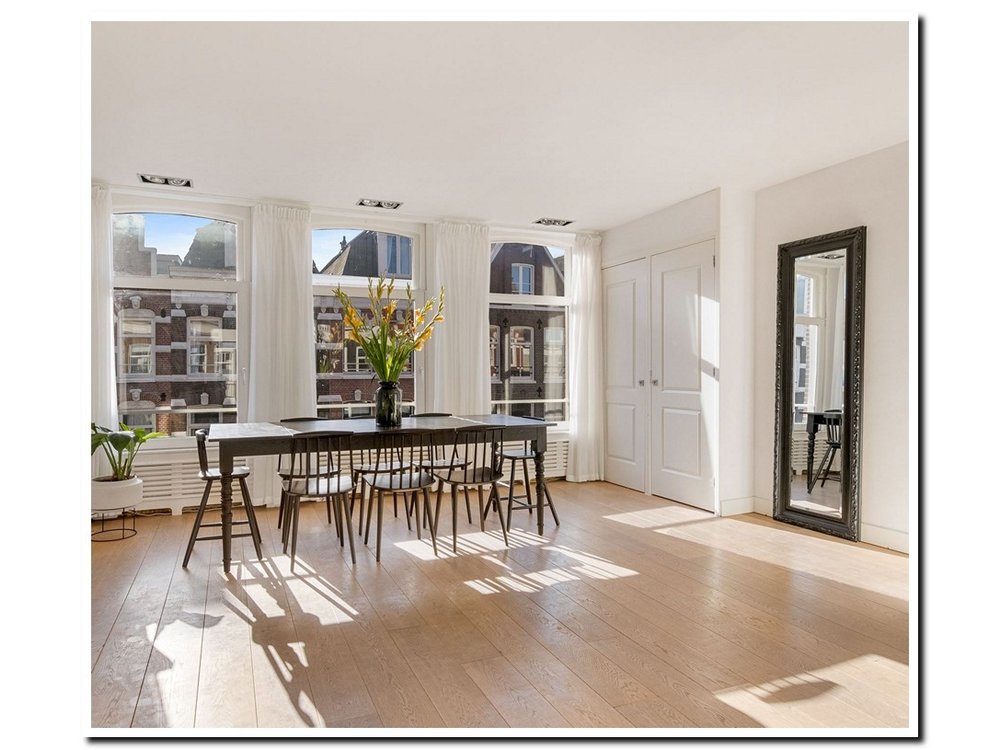 Het ornament aan de buienkant van de lijst is opgebouwd uit een sierlijke streng van slank bladmotief.