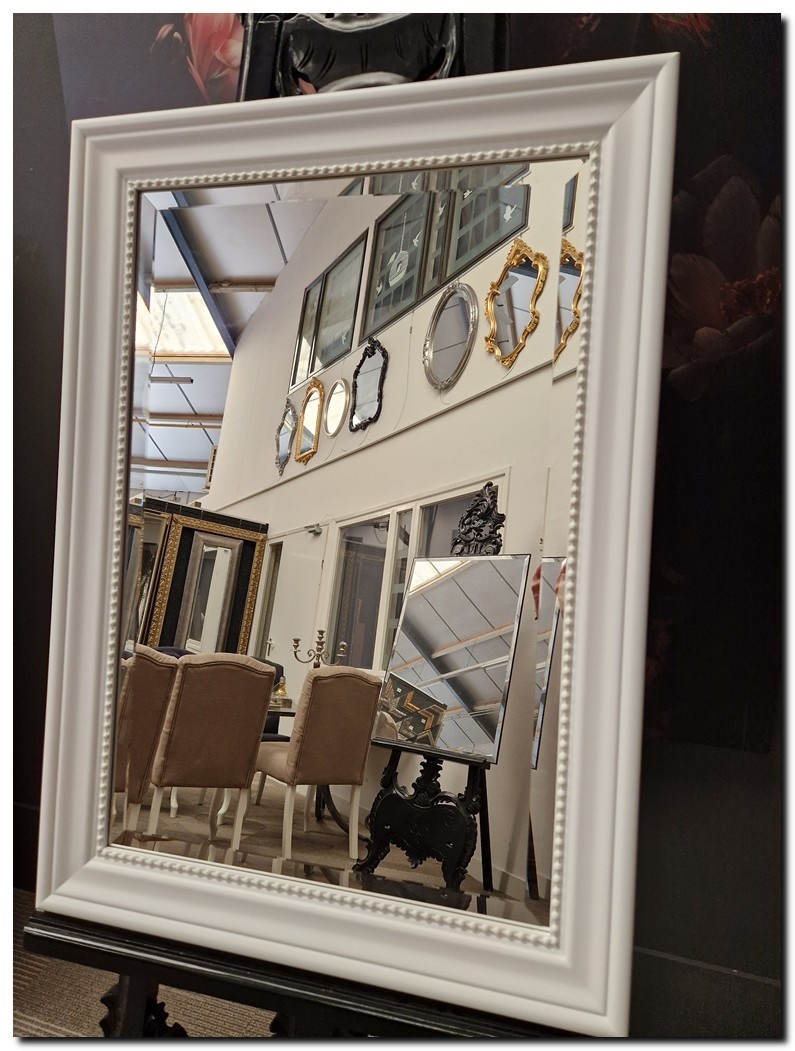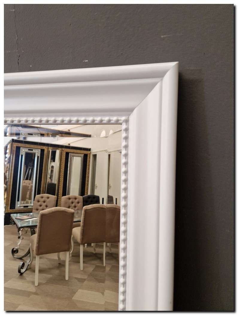 Laat u verrassen door de charme van de klassieke spiegel NINO met parelrand in de kleur wit.