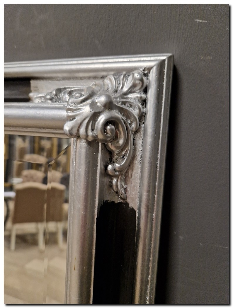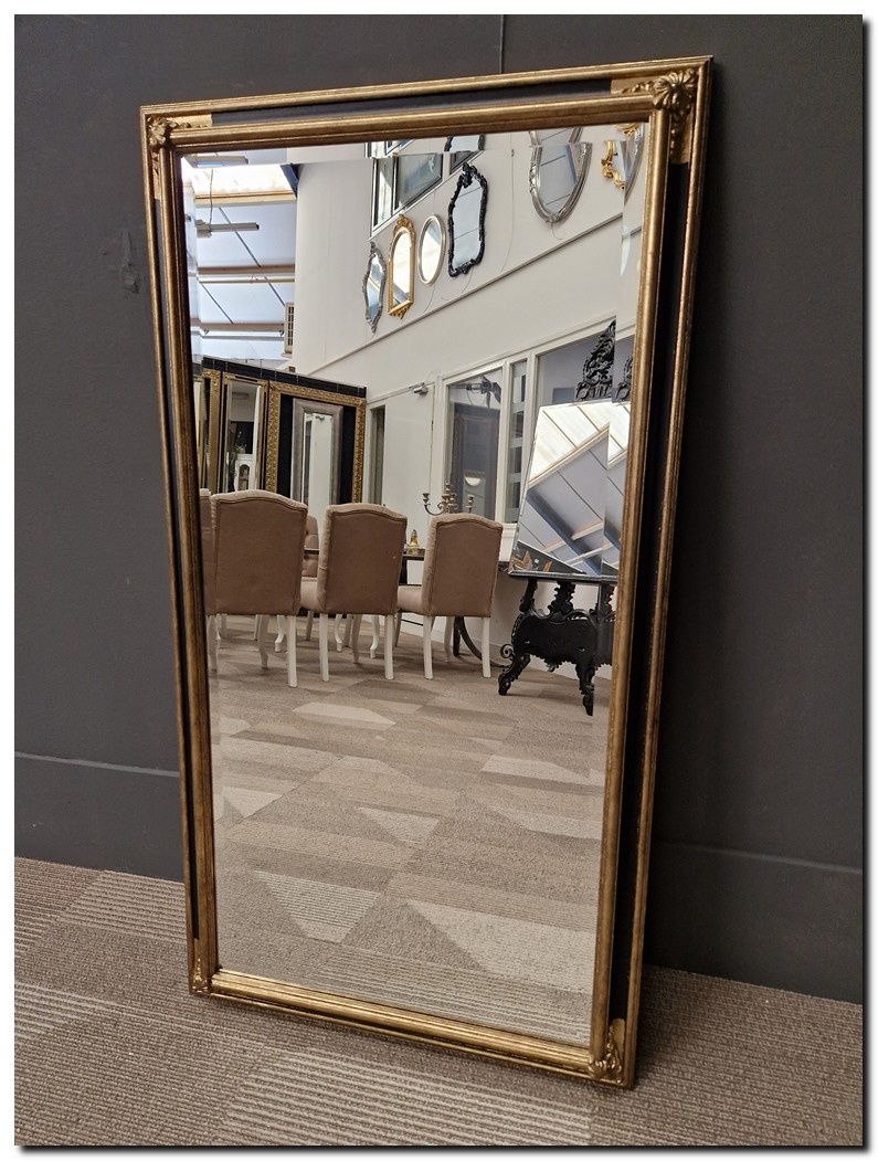 De contrast kleuren zilver zwart en goud zwart maken de spiegel statig.