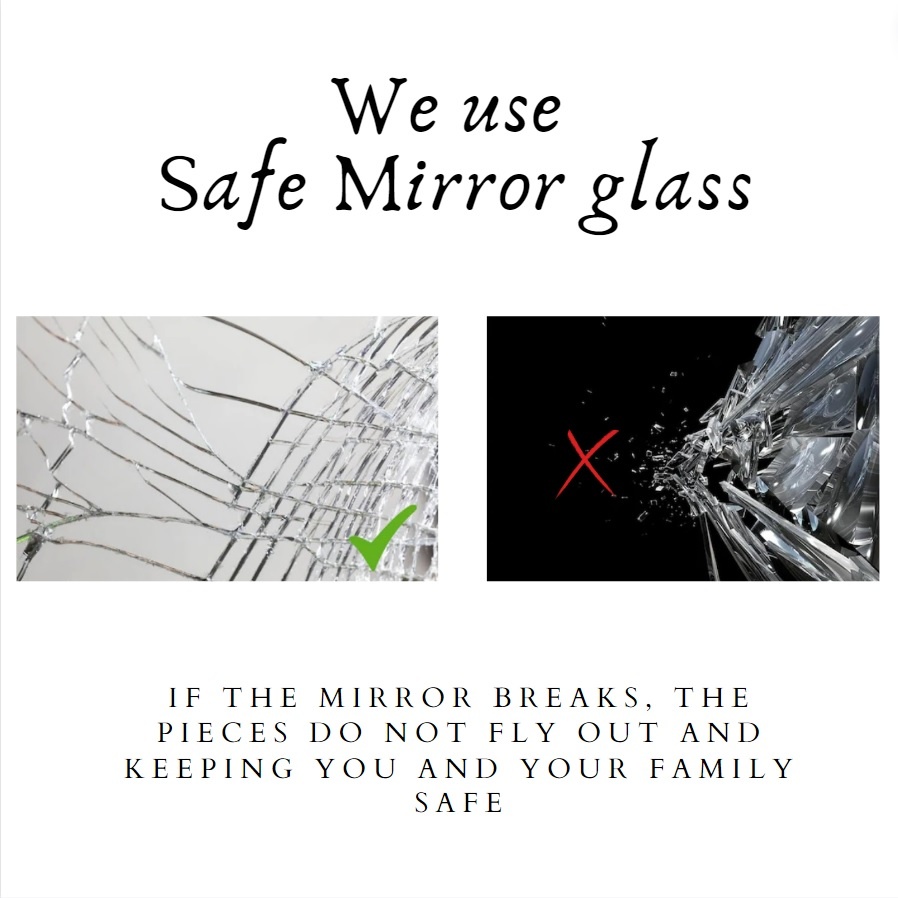 Voor ons zijn alle mensen en dieren waardevol, ons duurzame spiegelglas met speciale veiligheids-folie helpt je beschermen tegen letsel bij breuk.