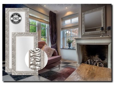 Laat u verrassen door deze tijdloze Italiaanse spiegel in de prachtige kleur zilver met een touch van gebrand omber.