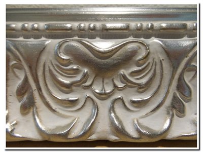 Eerst word de lijst verguld met bladzilver slagmetaal en daarna ingewassen met een witte kleur.