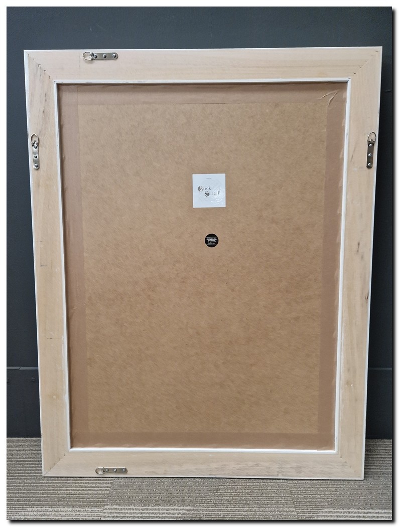 De spiegel is ambachtelijk gemaakt in Italië en de brede lijst van 9,3 cm is gemaakt van massief hout, ook het ornament is van hout en is diep gebosseleerd met een tijdloos ornament.