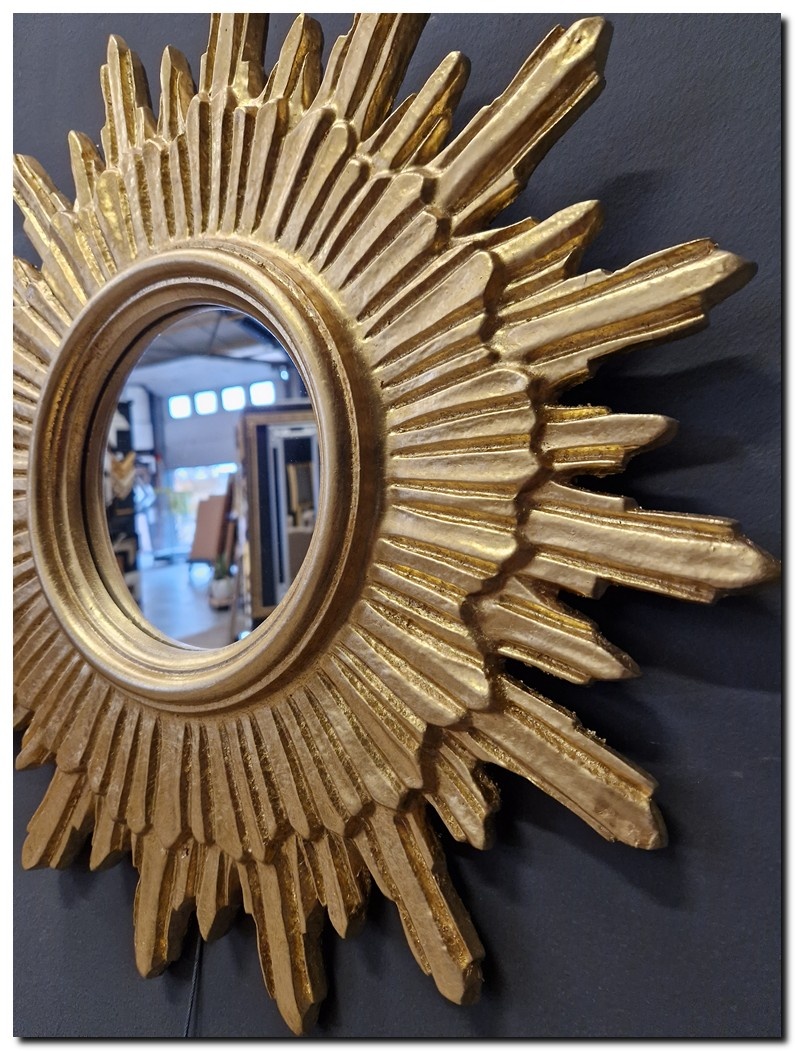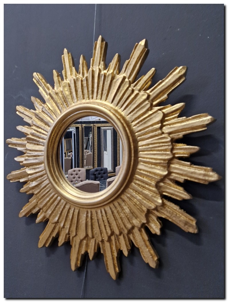 Grote zonnespiegel van 52 cm rond in houten lijst verguld goud Eloisa