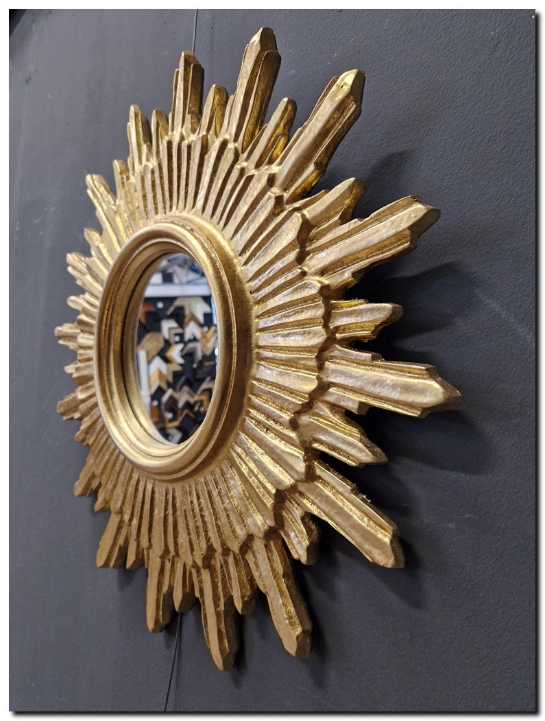 Beoordeel Grote zonnespiegel van 52 cm rond in houten lijst verguld goud Eloisa